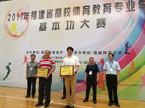 日前,2017年福建省高校体育教育专业学生基本功大赛在福建师范大学举行。经过2天紧张激烈的角逐,我校体育学院6名体育教育专业学生组成的代表队荣获团体一等奖。