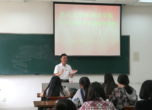 近日,厦门五缘实验学校校长兼党委书记、福建省特级教师、国务院政府特殊津贴获得者石锡伍老师应邀为外国语学院师范生作了主题为“初中英语教师招考面试的片段教学”的指导讲座。