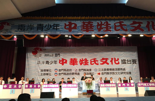 6月12日至14日,第九届海峡论坛•海峡两岸青少年中华姓氏源流知识竞赛在金门县金城中学举行。经过五轮角逐,我校诚毅学院王佳琳、艾静、苗鑫三位同学组成的诚毅学院代表队获得大学生组一等奖;我校文学院蔡振峰、杨荷、郑玛利三位同学组成的亚洲中文精品乱码代表队获得大学生组三等奖,蔡振峰获得姓氏小故事作文比赛个人二等奖。