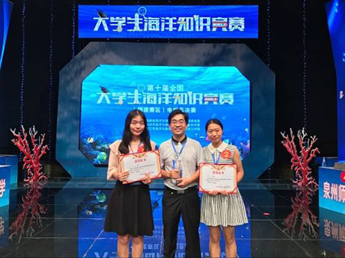 近日,第十届全国大中学生海洋知识竞赛(福建赛区)电视赛在福建晋江落幕。在水产学院陈强老师的指导下,由学院江曼玉、夏楠同学组成的代表队获得团体第三名的好成绩;江曼玉获评为最佳选手,并将作为福建赛区代表之一参加全国总决赛。