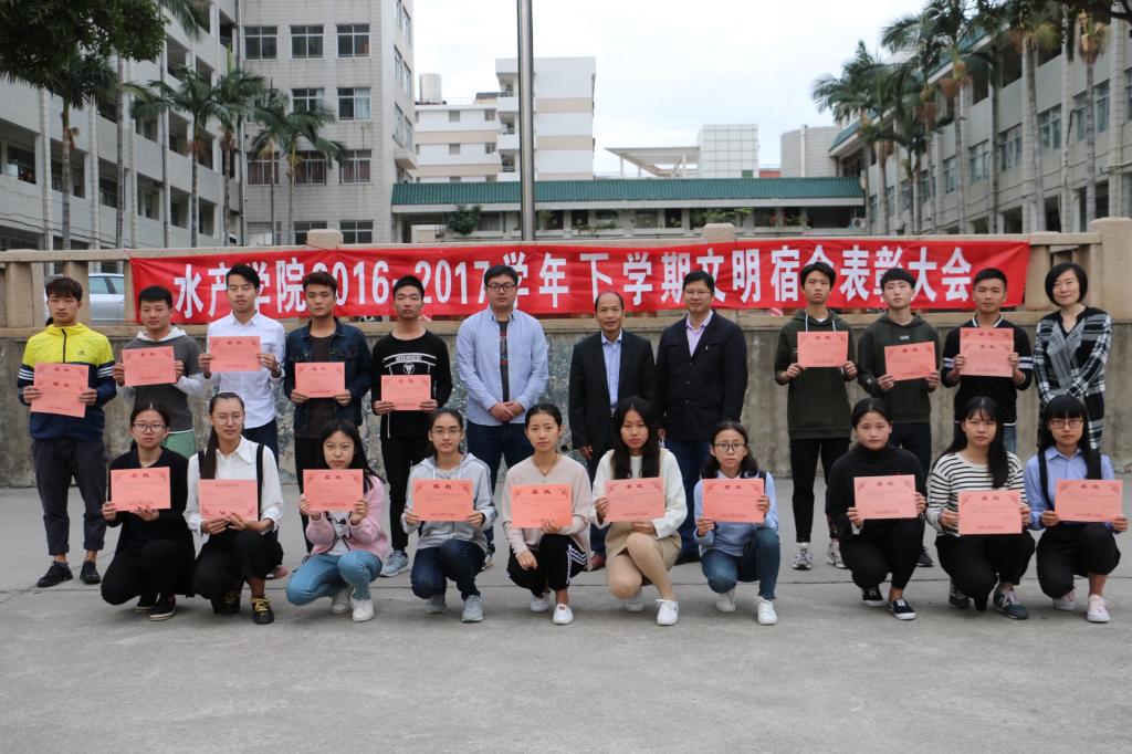 近日,水产学院召开2016-2017学年第二学期文明宿舍表彰大会,表彰了7#419等20间文明宿舍和20名优秀宿舍长。