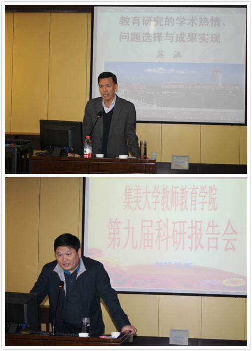 报告会上,原文学院院长苏涵教授应邀作《教育研究的学术热情、问题选择与成果实现》的专题报告。他从教育研究的学术热情、教育研究的问题选择、研究成果的实现三个方面阐述了教育工作者为什么要做科研、如何做好科研、科研如何体现,针对学院科研情况提出了一些很好的建议。陈福昌阐述了申报科研项目的注意事项、学院科研资源整合、科研团队建设及学校将加大科研奖励等方面内容,并对学院的科研工作进行了指导。