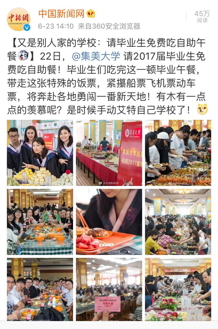 [央视网、人民网、中国新闻网、福建日报、福建新闻频道]别人家的学校,集大毕业生免费吃自助午餐