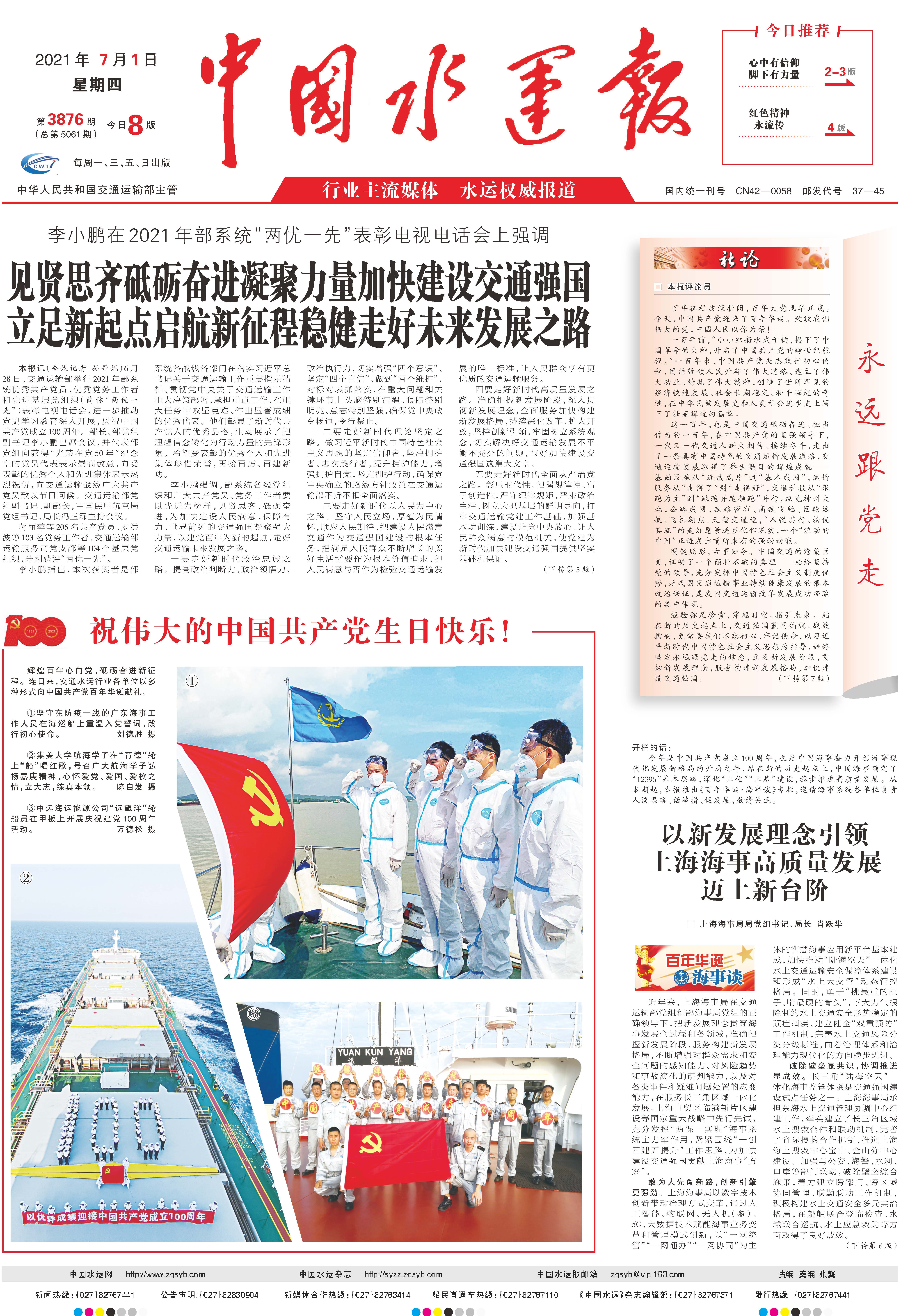 【中国水运报】祝伟大的中国共产党生日快乐!