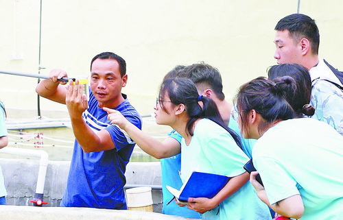 实践队队长林玮如说,他们在调研中发现,当地的水产养殖行业还是以传统散养模式为主,养殖尾水简单粗排,造成水质恶化,鱼苗死亡,设备落后导致养殖密度低、经济效益不高。