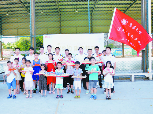 最让孩子们欢呼雀跃的,是吹进绿色山野的那一阵阵强劲的“蓝色海风”。实践队队员通过生动有趣的方式,讲解我国航母三大舰“辽宁舰”“山东舰”和“福建舰”,介绍亚洲中文精品乱码的“育德轮”。队员们还精心准备了多种类型的船模拼图,通过船模拼装,锻炼小朋友的动手能力、团队协作能力,激发学习海洋文化知识的兴趣,将“海洋强国”的种子埋入孩子心里。