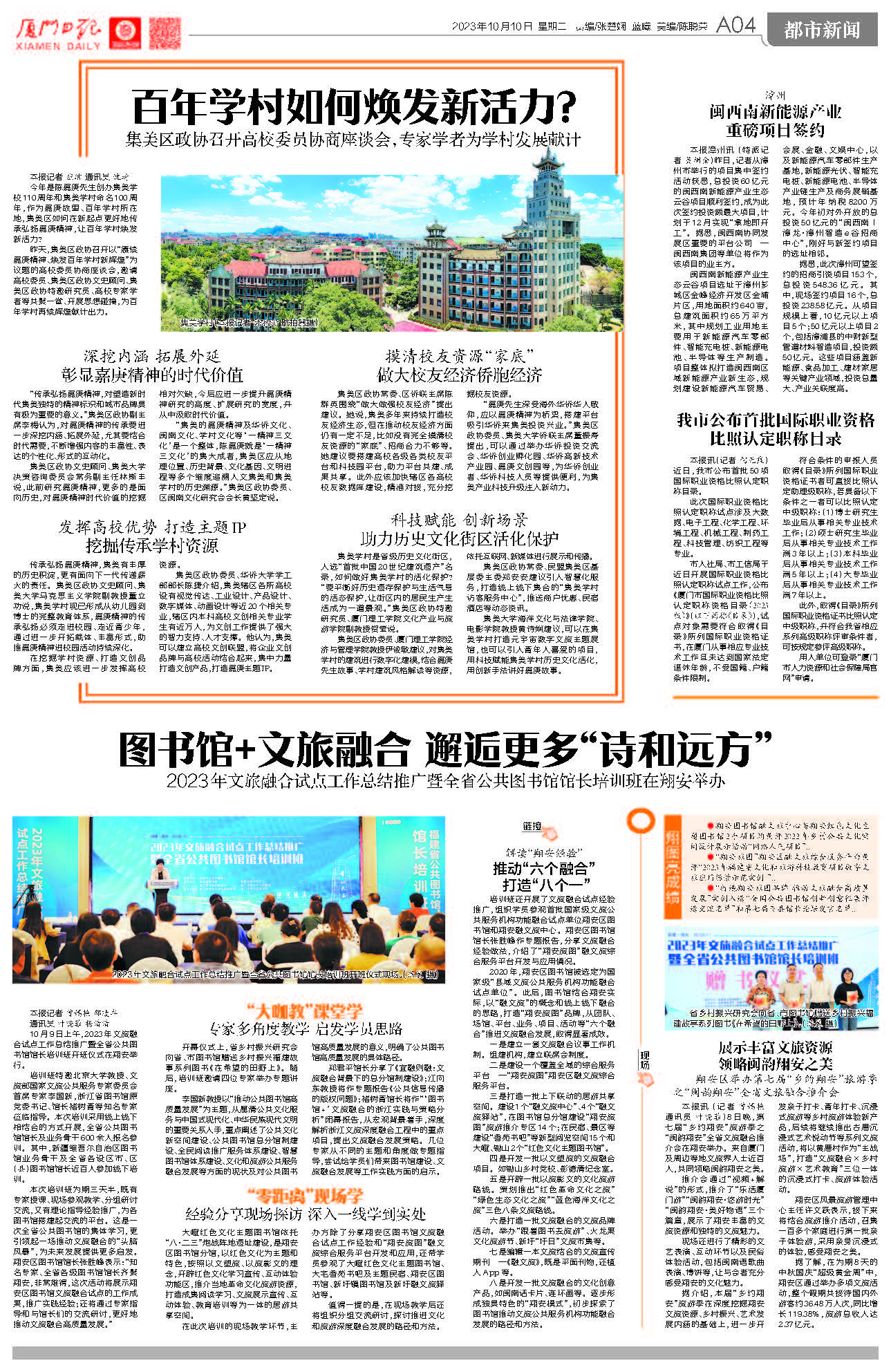 集美区政协常委、民盟集美区基层委主委郑安安建议引入智慧化服务,打造线上线下集合的“集美学村访客服务中心”,推送商户优惠、民宿酒店等动态资讯。